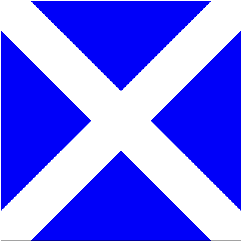 ![]() | S – Avkortning: Flagg S brukes ved en eventuell avkortning på grunn av lite vind eller lignende. Det føres ofte av en jolle som liger ved et merke som det passer å avkorte ved. |